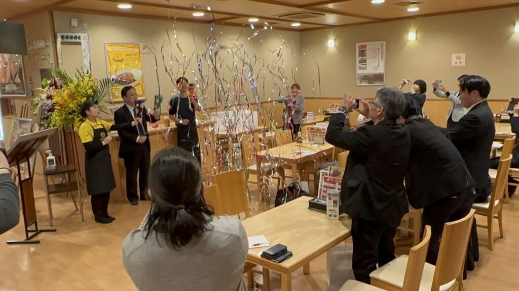 本日は、オープニングセレモニーとして、ご来席いただきましたお取引先様やメディアの方に、弊社代表取締役社長の小川光久より、ご挨拶させていただきました。